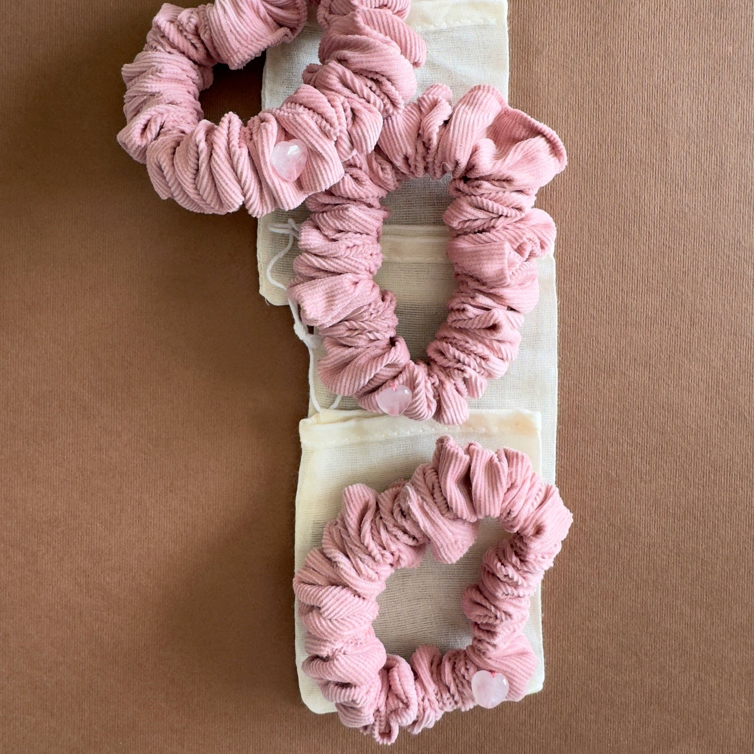 Scrunchie in cotone, morbido e resistente, che custodisce al suo interno una piccola pietra naturale: un dettaglio invisibile agli altri, ma pensato per accompagnarti ogni giorno.